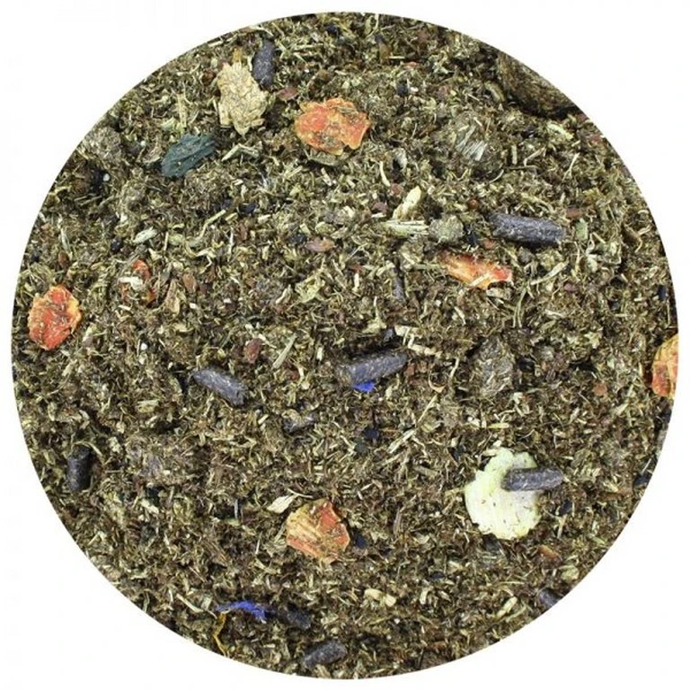 Indhold: Timote, alpehø, solsikkekage, hørfrø, sortkommen, hørfrøolie, ærteflager, gulerodsflager, calciumcarbonat, fermenteret saccharomyces cereviseae, monocalciumfosfat, lancetvejbred, salvieblade, kamille, solsikkeolie, artiskok, fennikel, morgenfrue, brændenælde, kornblomst.