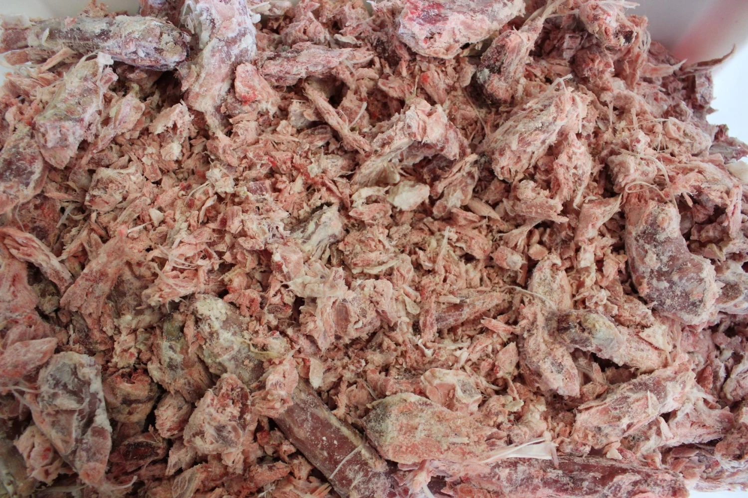 Råfoder med andemix består af vinger, lår og halse fra danske ænder. Andemix stykker kan variere ca. 1-5 cm.