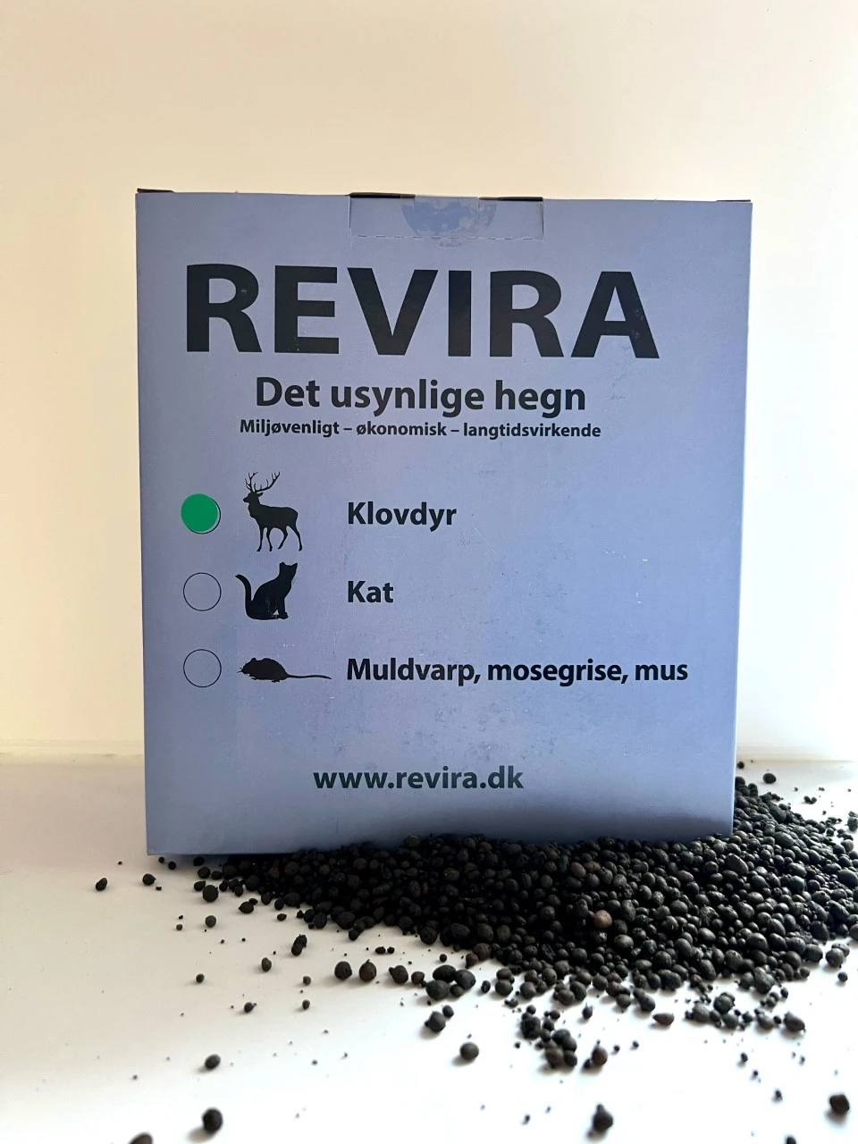 Revira er specialbehandlede leca kugler, der afskrækker dyrene i det behandlede område. Dette middel indeholder absolut ingen kemiske eller biologiske tilsætningsstoffer. Dyrene føler fare når de fornemmer midlet, og derved søger væk fra området.